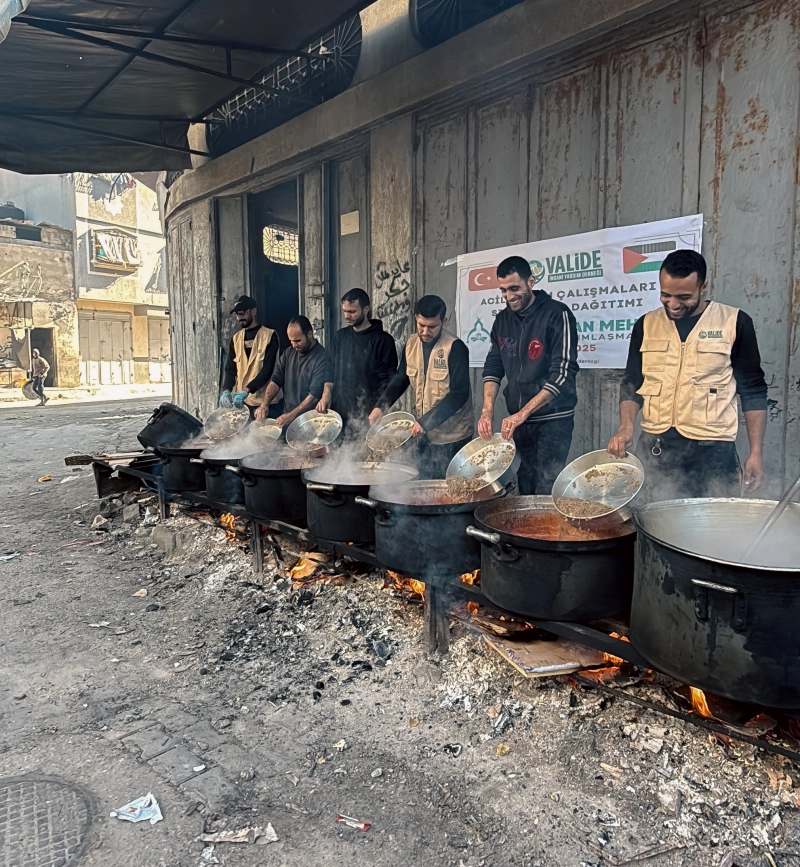 Continuing its aid activities in the region without interruption in the face of the humanitarian tragedy in Gaza, the Valide Association welcomed the blessed Miraç Kandili shoulder to shoulder with the people of Gaza. On this special day, marked by increased spirituality and sharing, hot meals prepared with the support of the Fatih Sultan Mehmet Education and Solidarity Foundation brought blessings to the tables of hundreds of our Gazan brothers and sisters.