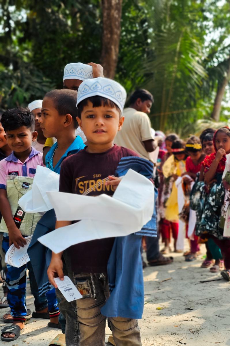 Bayramın bereketi ve paylaşmanın huzuruyla uyandığımız bu özel günde, ekiplerimiz Bangladeş’in en ihtiyaç duyulan bölgelerindeydi. Bağışçılarımızın destekleriyle titizlikle hazırlanan bayramlık kıyafetler ve hediyeler, binlerce kilometre ötedeki kardeşlerimize teslim edildi.