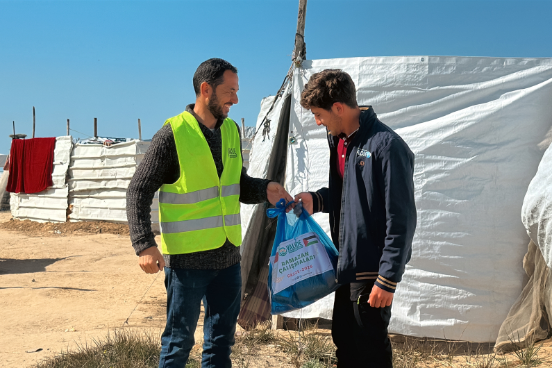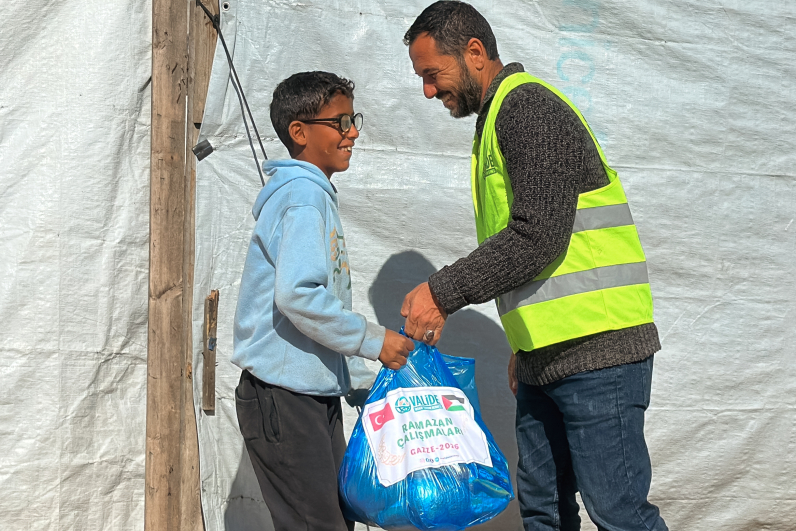 Zorlu yaşam şartlarının ve kısıtlı imkânların gölgesinde ramazan ayını karşılayan Gazze’de, Valide İnsani Yardım Derneği olarak kardeşlerimizin yanındayız. Hayırseverlerimizin destekleriyle hazırlanan iftar paketlerini, Gazze’nin dar sokaklarında ve çadır bölgelerinde yaşam mücadelesi veren ailelerimize ulaştırmanın huzurunu yaşıyoruz.