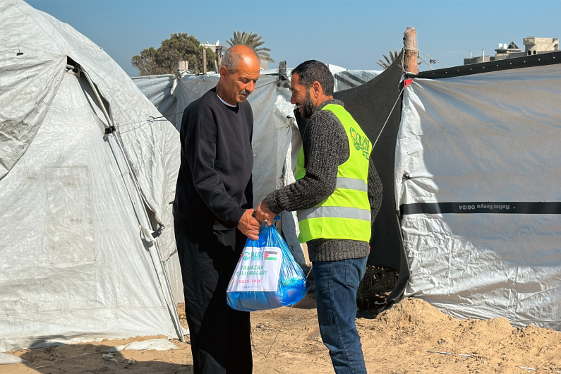 Mübarek Ramazan ayının gelmesiyle birlikte Gazze şeridinde temel gıda maddelerine ulaşım hayati bir önem kazandı. Bölgedeki saha ekiplerimiz, devam eden zorluklara rağmen büyük bir özveriyle çalışarak hazırlanan 50 adet gıda paketini, iftar sofralarına katık olması amacıyla ihtiyaç sahibi ailelerin kapılarına kadar ulaştırdı.